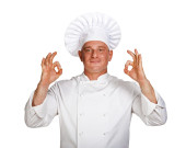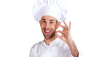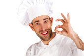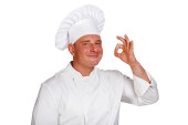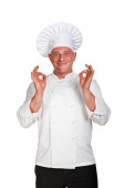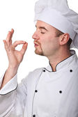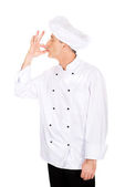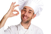 Szef kuchni mężczyzna na białym tle nad białym tle.