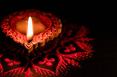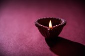 światło pojedyncze diya gliny zapalił się podczas święta diwali. Happy diwali pozdrowienia karta projekt, hinduskie hinduskie święto świateł o nazwie Diwali