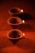 światło pojedyncze diya gliny zapalił się podczas święta diwali. Happy diwali pozdrowienia karta projekt, hinduskie hinduskie święto świateł o nazwie Diwali