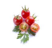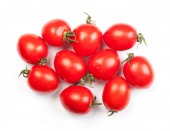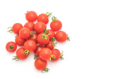 Wiśniowe pomidory na górze na białym tle w kropli wody