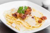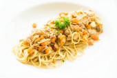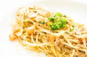 Tuńczyka spaghetti w biały talerz