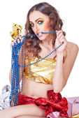 uśmiechnięta kobieta model z jasny makijaż uroda moda