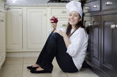 piękna brunetka w kuchni cięcia warzyw