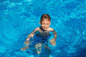 słodkie dziecko, chłopiec, pływanie w basenie woda