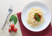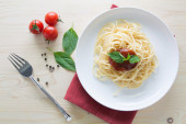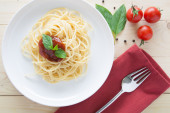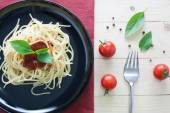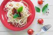 Spaghetti z świeżych pomidorów bazylia zioła włoskie