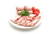 Zdjęcie "Cienkie plasterki surowego side wieprzowina" może być wykorzystywane do celów osobistych i komercyjnych zgodnie z warunkami zakupionej licencji Royalty-free. Obraz jest dostępny do pobrania w jakości wysokiej rozdzielczości do 5760x3840.