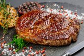 Rumsztyk, Rumpsteak wołowiny z marmuru wołowiny średnio rzadki z ziemniakami i s