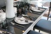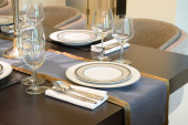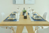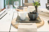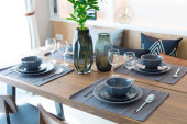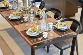 Nowoczesna restauracja ustawiona na drewnianym stole