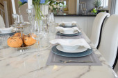 Zdjęcie "Nowoczesna restauracja ustawiona na drewnianym stole" może być wykorzystywane do celów osobistych i komercyjnych zgodnie z warunkami zakupionej licencji Royalty-free. Obraz jest dostępny do pobrania w jakości wysokiej rozdzielczości do 5760x3840.