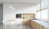 Zdjęcie "Widok narożny stołu kuchennego i telewizora" może być wykorzystywane do celów osobistych i komercyjnych zgodnie z warunkami zakupionej licencji Royalty-free. Obraz jest dostępny do pobrania w jakości wysokiej rozdzielczości do 5760x3840.