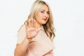 Dama biznesu, dotykając palcem ekranu, cyfrowy z miejscem dla tekstu lub projekt. Skupić się na twarz