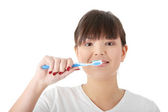 kobieta z wielkim zębów gospodarstwa szczoteczka do zębów