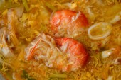 wymieszać owoce smażone dużych makaronem i jajka z sosem sukiyaki na danie