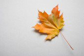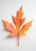 Żywe klon liści na białym tle na białym tle. Autumn klonowe jasny liści. Dwa liście na białym tle pomarańczowy i czerwony