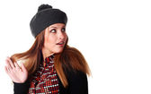 Kobieta w sweter i biały kapelusz, skierowany w dół