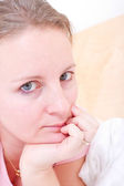 blond dziewczynka z krótkimi włosami wygląda smutno