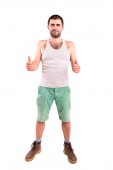 pełnej długości piękny portret młodego faceta, z rękami splecionymi