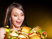 Zdjęcie "kobieta jedzenie hamburgerów na urodziny." może być wykorzystywane do celów osobistych i komercyjnych zgodnie z warunkami zakupionej licencji Royalty-free. Obraz jest dostępny do pobrania w jakości wysokiej rozdzielczości do 5760x3840.