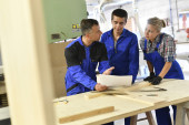 Zdjęcie "cieśla z praktykantami w warsztacie" może być wykorzystywane do celów osobistych i komercyjnych zgodnie z warunkami zakupionej licencji Royalty-free. Obraz jest dostępny do pobrania w jakości wysokiej rozdzielczości do 5760x3840.