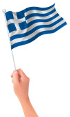 Flaga zespół rąk ludów podnoszenie Narodowego Grecji, renderowania 3d na białym tle