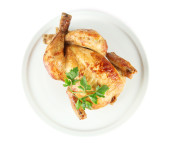 cały Kurczak pieczony na płytce białe na białym tle