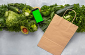 Mężczyzny ręce trzyma worek papierowy artykułów spożywczych