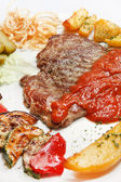 mięso z warzywami i makaronem