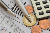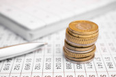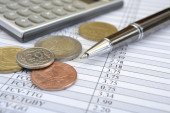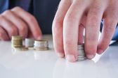 biznes człowiek robi konta na urząd z pieniędzy i kalkulator