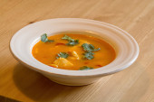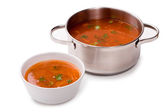 Wegetariańskie i wegańskie danie kuchni indyjskiej, kremowa zupa pikantne pomidor
