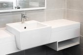 Wnętrze łazienki z zlewem i baterią