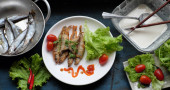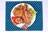 Tajskie jedzenie, głęboko opalanych strumieniowo - mackarel i pikantne zioło mieszane z kalmarów smażone.