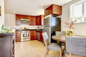 Zdjęcie "Jadalnia z ładne czerwone skórzane fotele" może być wykorzystywane do celów osobistych i komercyjnych zgodnie z warunkami zakupionej licencji Royalty-free. Obraz jest dostępny do pobrania w jakości wysokiej rozdzielczości do 5760x3840.