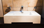 Zdjęcie "Wnętrze łazienki z zlewem i baterią." może być wykorzystywane do celów osobistych i komercyjnych zgodnie z warunkami zakupionej licencji Royalty-free. Obraz jest dostępny do pobrania w jakości wysokiej rozdzielczości do 5760x3840.