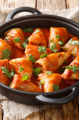 Gulasz wieprzowy w sosie pikantnym, wino, pomidorów i śmietany z oliv