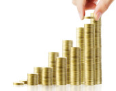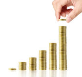 ręcznie umieścić moneta pieniądze schody, na białym tle