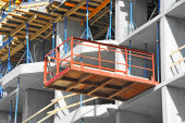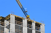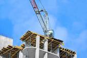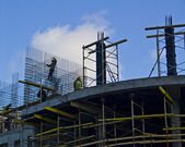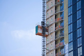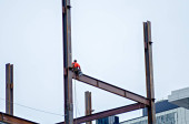 robotnik pracuje nad highrise budynku