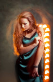 Piękna dziewczyna model z doskonały make-up obracając się wokół kamery