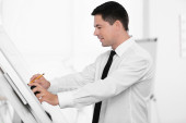 Zdjęcie "Trener biznesu, dając prezentacji " może być wykorzystywane do celów osobistych i komercyjnych zgodnie z warunkami zakupionej licencji Royalty-free. Obraz jest dostępny do pobrania w jakości wysokiej rozdzielczości do 5760x3840.
