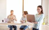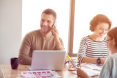 Zdjęcie "Pozytywny koledzy siedzący przy stole" może być wykorzystywane do celów osobistych i komercyjnych zgodnie z warunkami zakupionej licencji Royalty-free. Obraz jest dostępny do pobrania w jakości wysokiej rozdzielczości do 5760x3840.