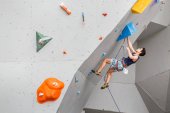 Sportowy młoda kobieta kolorowy wspinaczka siłowni w