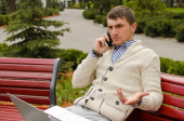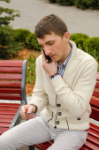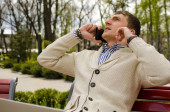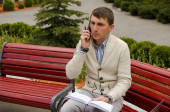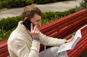 Zdjęcie "Młody człowiek rozmawia przez telefon." może być wykorzystywane do celów osobistych i komercyjnych zgodnie z warunkami zakupionej licencji Royalty-free. Obraz jest dostępny do pobrania w jakości wysokiej rozdzielczości do 5760x3840.