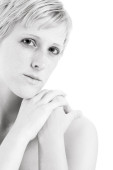 piękna młoda kobieta z blond, długie włosy na białym tle
