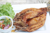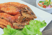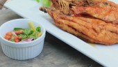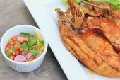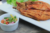 smażona ryba z sosem rybnym
