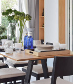 Zdjęcie "Jadalnia w stylu ceramiki na drewnianym stołem" może być wykorzystywane do celów osobistych i komercyjnych zgodnie z warunkami zakupionej licencji Royalty-free. Obraz jest dostępny do pobrania w jakości wysokiej rozdzielczości do 5760x3840.