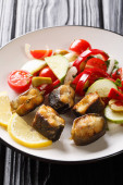 Smaczny Rolmopsy nadziewane oliwki, cebula, ogórki i cytryny Zamknij u