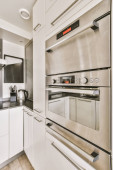 Nowoczesny piekarnik i lodówka mocowane do ściany z cupbo spiżarnia