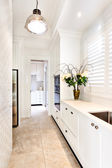 Zdjęcie "Nowoczesna kuchnia z lodówką i przymocowana do ściany za pomocą cabi" może być wykorzystywane do celów osobistych i komercyjnych zgodnie z warunkami zakupionej licencji Royalty-free. Obraz jest dostępny do pobrania w jakości wysokiej rozdzielczości do 5760x3840.