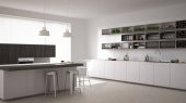 Biała minimalistyczna kuchnia, wystrój wnętrz