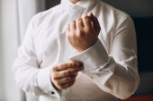 Pan młody w garnitur z dziurki
