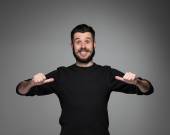 Portret młodego mężczyzny ze zszokowanym wyrazem twarzy